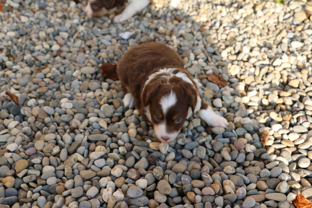 Sansa ist so herzig, das zeigt sie ja auch äußerlich mit ihrem dicken Spot eines Herzen. Sie ist neugierig, verschmust und verspielt. Sie hat zwei blaue Augen eins Bernstein gemarbelt und wiegt ebenfalls etwas über 1kg (1070gr.) mit 3 Wochen. Unser hübsches redmerle Mädel, sie bleibt ebenfalls in der Nähe und bekommt einen großen Aussie Bruder und eine ganz tolle Familie dazu. Sie heißt nun Sunny und wiegt mit 7 Wochen 2500 gr.. Was ein freudiger Wirbelwind, wir freuen uns ebenfalls auf gemeinsame Spaziergänge.
